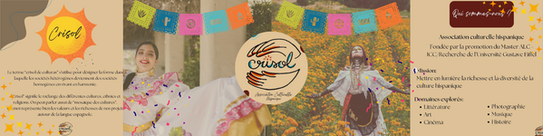 L'association Crisol est née en novembre 2024 au sein du Master ALC Industries Culturelles et Créatives/ Recherche, sur la base de sa proposition académique liée au monde hispanique. La magie de Crisol réside dans sa définition, en tant qu'instrument où se forgent les rêves et les idées de toute une communauté variée. Grâce à son équipe d'étudiants engagés dans la culture, Crisol promet d'émaner et d'élargir la connaissance de l'univers hispanique en termes culturels, afin que les gens se rapprochent et découvrent la beauté d'une langue et d'une culture si vastes.